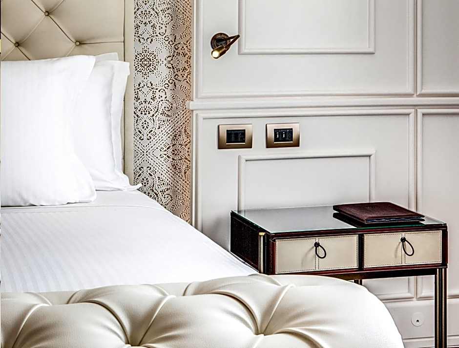 Prestige Room is 312 square feet and includes either a queen-size bed 150-154 width or 2 single beds 80-130 width plus hairdryer and safe.